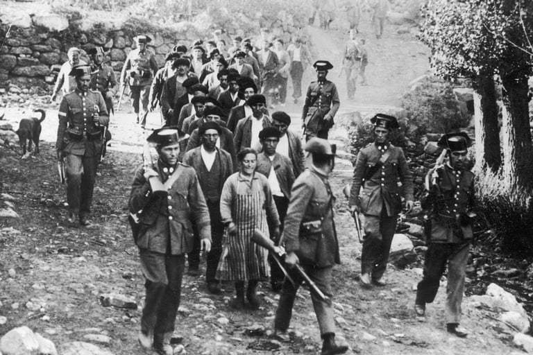 Pour échapper à la répression, de nombreux républicains passent la frontière. En France, ils sont enfermés dans des camps où les conditions de détention sont terribles, beaucoup meurent du Typhus.